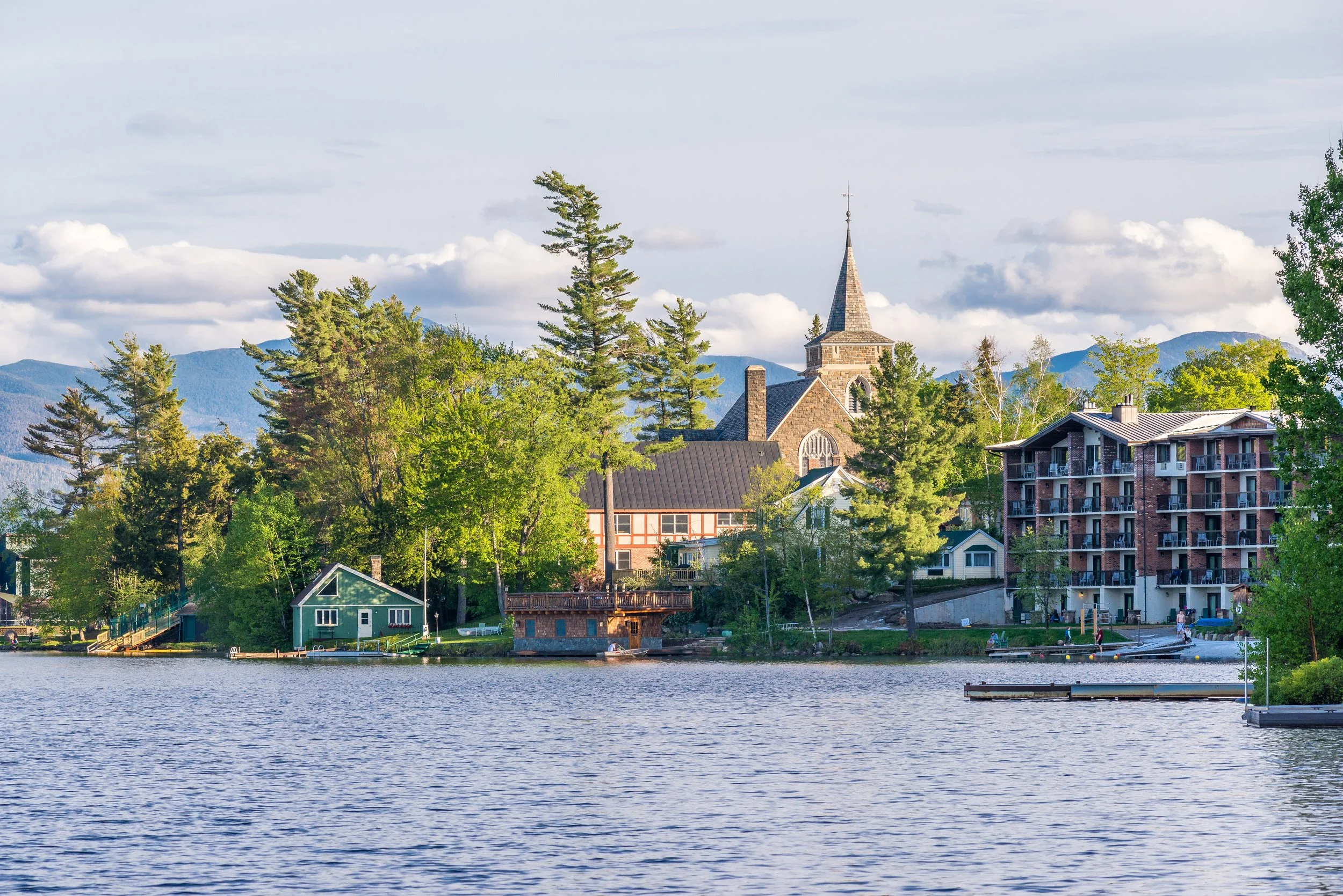 The Cottage restaurant and cafe is situated directly on the shore of Mirror Lake and offers spectacular views of the Great Range of the Adirondack High Peaks.